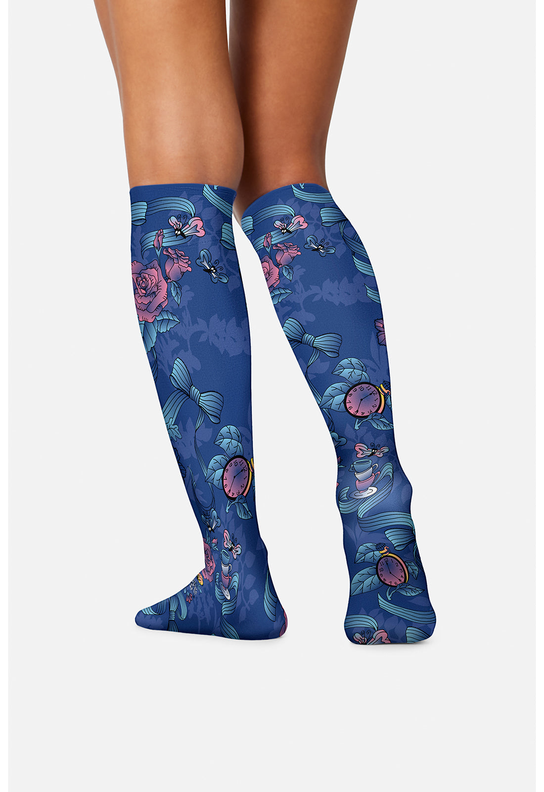 Comfort Support knee highs feature the characters you love, in colorful detail, thanks to a sublimation process that enhances prints and patterns without adding weight. Knee high 1 pair pack. 8-15 mmHg compression. 90% Nylon / 10% Spandex, latex free. Features: Comfortable, durable, lightweight. Sublimation printed for