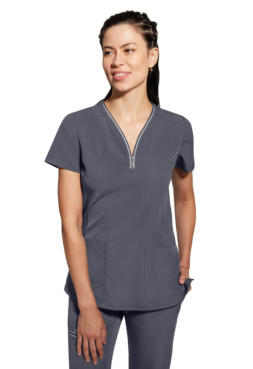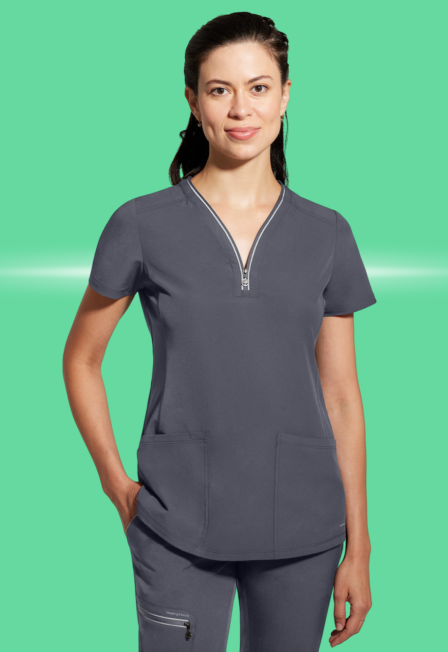 Experience the perfect blend of style and functionality with the Healing Hands Sonia Top from the 360 Collection. Designed for healthcare professionals, this modern yoga knit V-neck top offers exceptional comfort and a flattering fit, making it a go-to choice for long shifts.