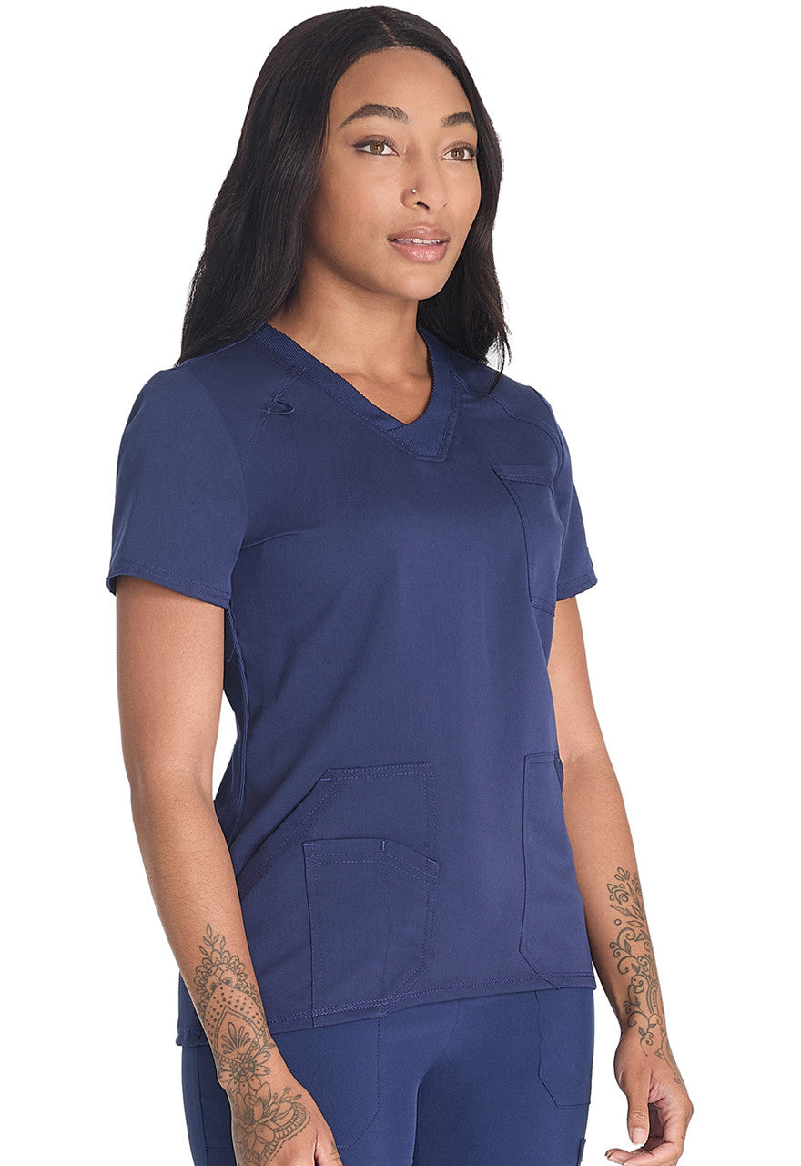 Designed to balance style and function, this v-neck top has stretchy rib-knit trim and lots of pockets. Featuring tonal rib-knit trim on the shaped neckband, pocket edges, and comfy back side panels, these medical uniforms offer a contemporary fit for professional occasions. The Nurse Scrubs include four pockets for storage, including a chest patch pocket and front patch pockets for convenience.