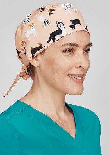 This unisex printed scrub cap features an adorable design with a cartoon dog pattern, perfect for healthcare professionals looking to add a touch of personality to their medical uniforms. Crafted from soft and breathable 100% Cotton, it ensures comfort during long shifts, making it an excellent addition to your nurse scrubs collection.