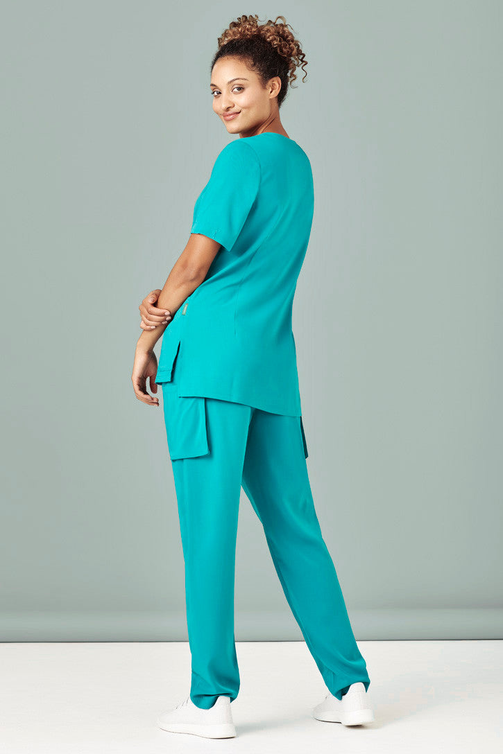Care Instructions: The BizCare Avery scrubs can be washed at 60°C (140°F) using a cold water gentle cycle with mild detergent. Avoid bleach and soaking; instead, line dry in the shade or tumble dry on low. For maintenance of the fabric and fit, iron on a cool setting if necessary, and do not dry clean.