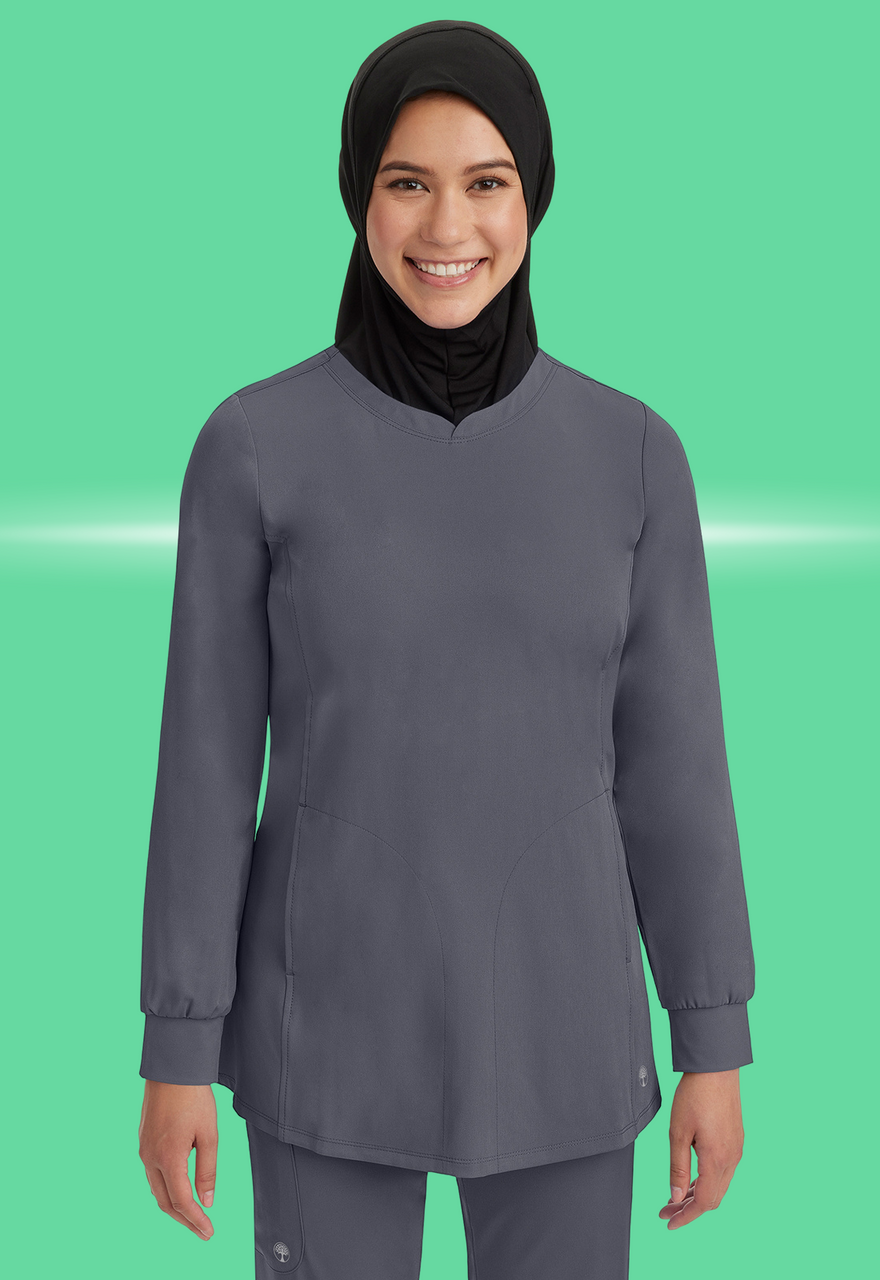 The Fatima Top from the HH Works collection by Healing Hands is designed with the modern healthcare professional in mind. This stylish top combines functionality with comfort, making it an excellent choice for those demanding long hours in medical environments. Its contemporary fit, high-low hemline, and thoughtful features ensure you stay comfortable and professional throughout your shift.