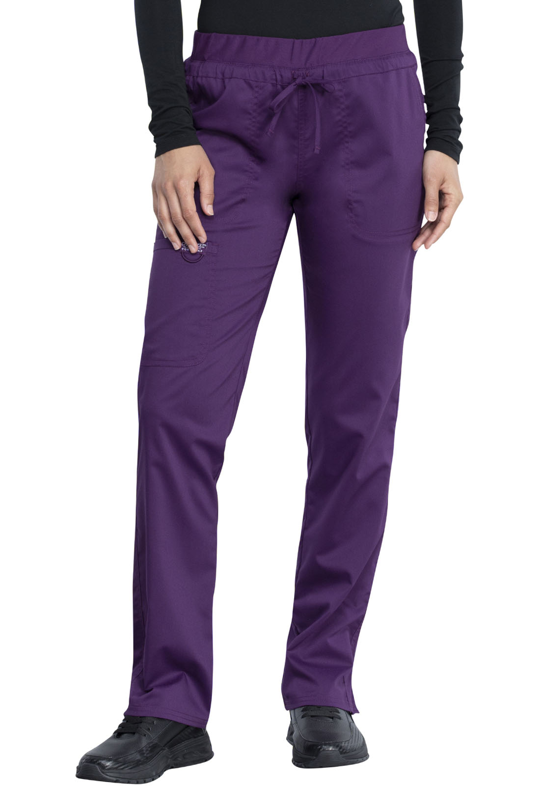 These nursing scrubs are engineered to provide an impeccable fit, allowing for a full range of motion essential in a medical environment. The sleek mid-rise and tapered leg not only offer aesthetic appeal but also practicality for dynamic shifts in a healthcare setting. Multiple pockets ensure you can keep essential tools and personal items within easy reach, and the elastic waistband combined with a drawstring ensures comfort and adaptability for all-day wear.